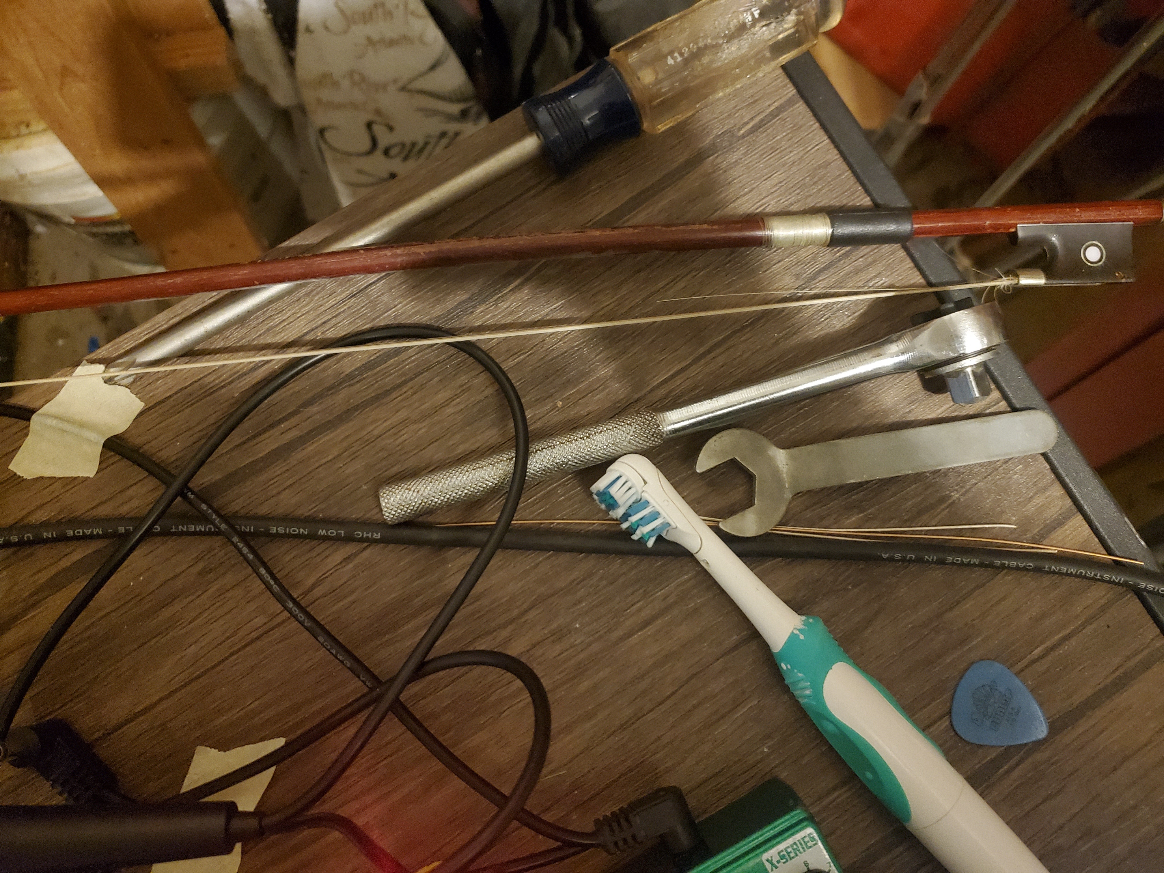 And the objects I used for guitar mangling (the electric toothbrush is a real winner, both using it to agitate strings/preparations and using the motor to create interference):